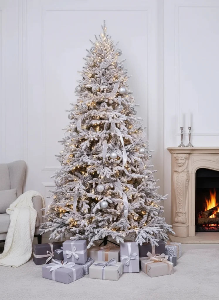 Un sapin somptueux qui ne fane jamais. Son allure enneigée et généreuse transforme instantanément votre intérieur en un décor de conte de fées, année après année, sans effort.