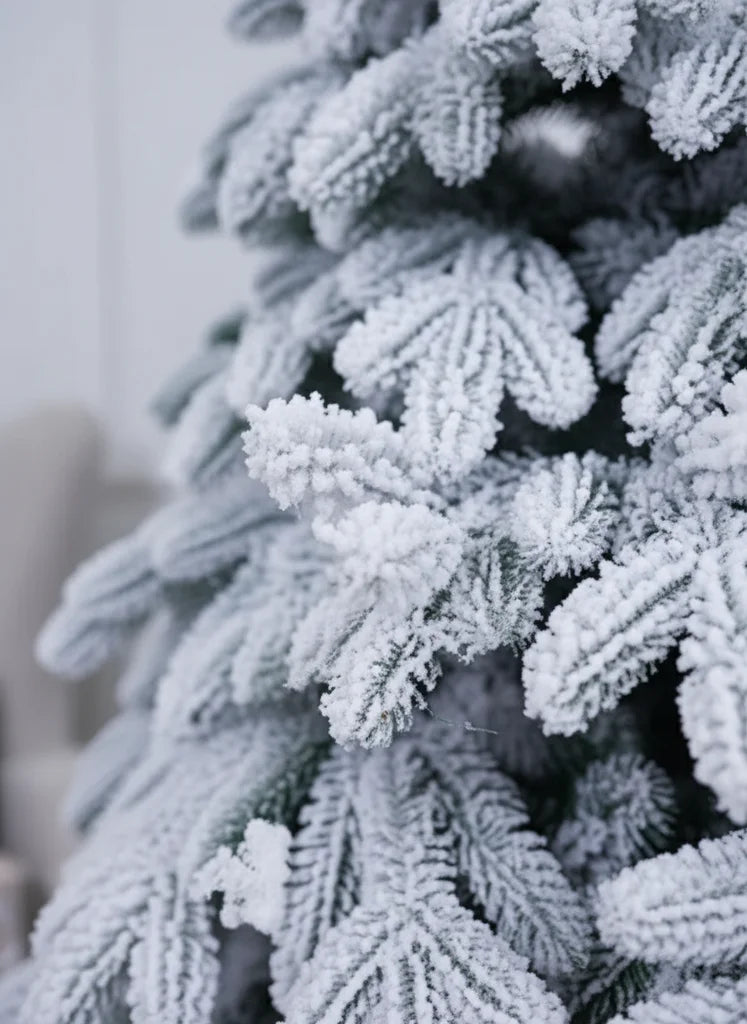 Un look enneigé et des branches denses qui bluffent, sans les épines à ramasser. La magie sans le désordre.
