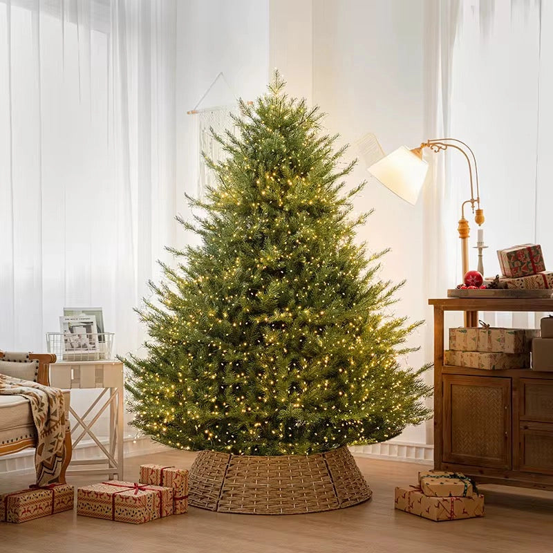 Un sapin somptueux au réalisme bluffant, dans son panier tressé chic. Le décor parfait est là.